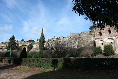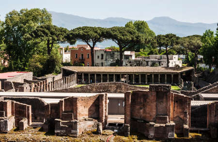Ruins of Herculaneum, which was covered by volcanic dust after Vesuvius eruption. Italy. History.