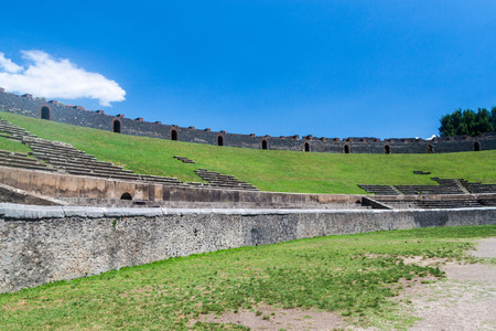 Amphiteather at ruins of ancient city Pompeii, destroyed by vulcanic eruption of Vesuvio mountain, Italy