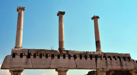 Ancient Pillars standing in the ruins on Pompeii, Italy