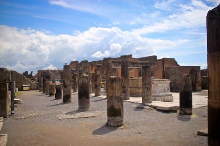 Ruins of the Forum at the ancient city of Pompeii in a beautiful early spring day