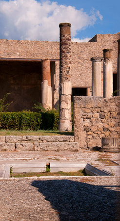 Ruins in Pompeii, Italy. Pompeii is an ancient Roman city died from the eruption of Mount Vesuvius in 79 AD