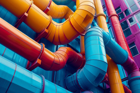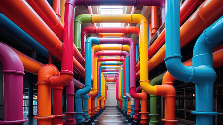 Piping system in bright colors. Generative AI illustration