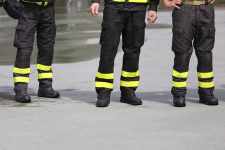 uniform boots of italian firefighters inthe firehouse