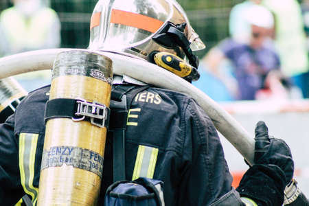 firefighter in action during a training in France