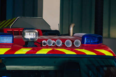 Seville Spain September 22, 2021 Fire engine parked at the fire station of the city center of Seville, an emblematic city and the capital of the region of Andalusia, in the south of Spain