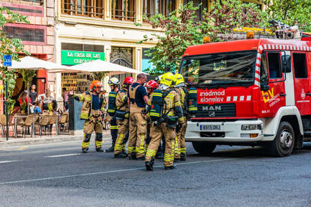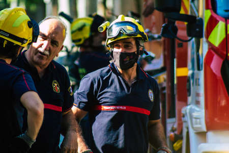 Seville Spain September 22, 2021 Seville firefighters training at the fire station during the coronavirus outbreak, they are training in the use of firefighting equipment under intervention conditions
