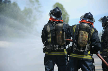 Firefighters fighting fire, Firefighters training