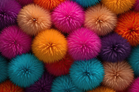 Numerous colorful pompoms create a vibrant and textured background, offering a cheerful and playful aesthetic. Ai generated image