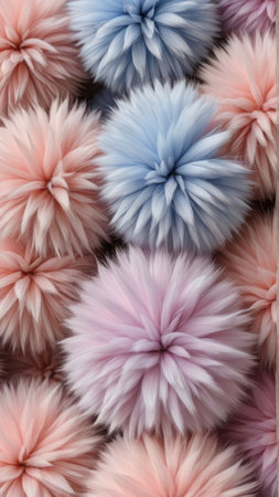 AI Generated. A visually pleasing vertical background featuring an array of soft and fluffy balls in gentle pastel hues, exuding a cozy and adorable atmosphere perfect for creative designs