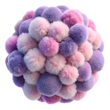 Fluffy 3D ball with an intricate, plush texture in bright, vivid colors.