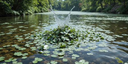 In a tranquil pond, workers diligently remove algae and watercress, allowing sunlight to dance across the water's surface, bringing new life to the ecosystem.