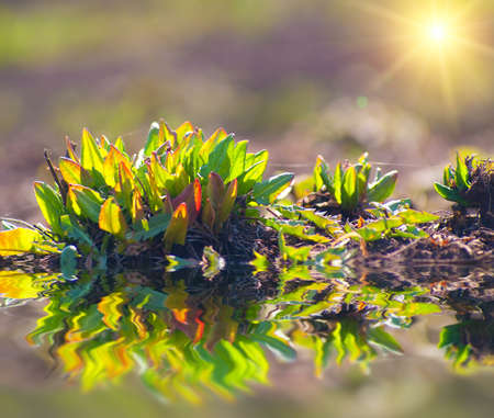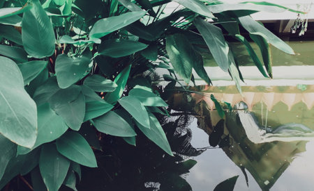 Green plant reflecting in the water. Natural scene. Beauty in nature.