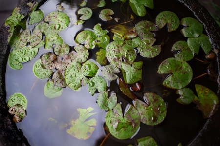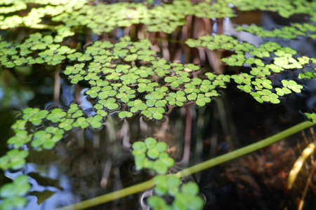 Green Ludwigia has green leaves that will grow up out of the water surface and form a carpet of pretty foliage. Nature garden with exotic evergreen plants