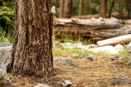 Moody pine tree trunk, bottom view, creative angle