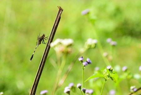 A Dragonfly perched on a tree branch and nature background, Selective focus, insect macro, Colorful insect in Thailand.