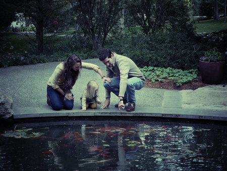 A tranquil water feature with radiant goldfish swimming gracefully beneath the surface, symbolizing prosperity and abundance.