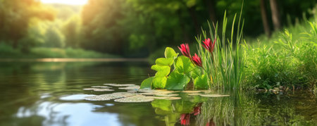 A serene wetland, a vibrant tapestry of reeds, water lilies, and aquatic life, reflects lush greenery in tranquil waters This pristine ecosystem showcases rich biodiversity and ecological harmony, a testament to the importance of wetland conservation Explore its breathtaking beauty and thriving life AI Generative