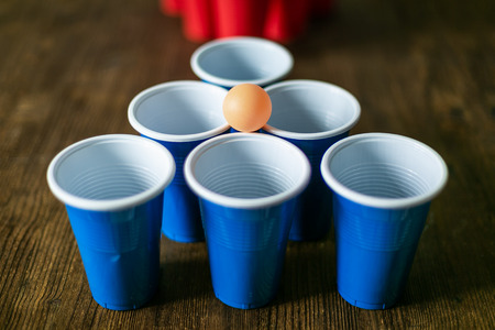 Cups for game Beer Pong on the table