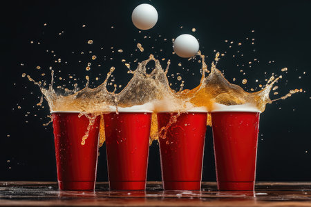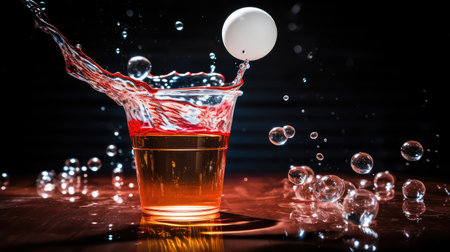 Dynamic Beer Pong Scene: Beer and Ping Pong Ball Mid-Play