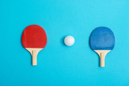 Two rackets for playing table tennis on blue background