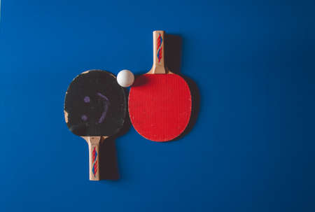 Pin-pong rubbers and a ball on close up. Sport concept
