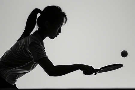 young beautiful and happy Asian Chinese woman playing table tennis with racket and ball at indoor tennis court in sport and healthy lifestyle concept