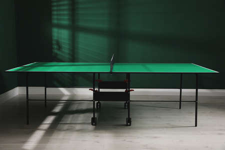 Green table with net in room