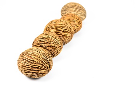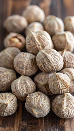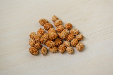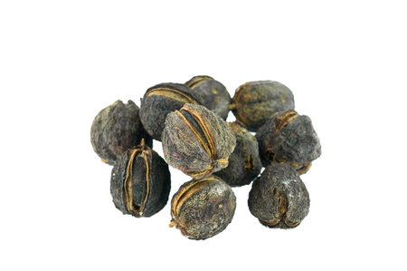 Macro Still Life of Natural Dried Oak Galls (Quercus infectoria) Showing Woody Structure and Holes, Rich in Tannins for Ink and Medicine.