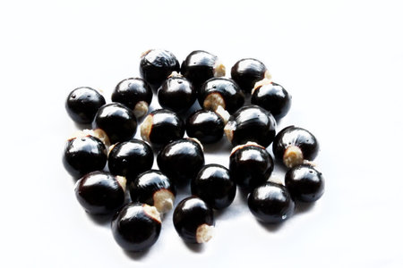 Suicide tree seed. Pong pong seed or Othalanga. Cerbera oddloam's seed on white background