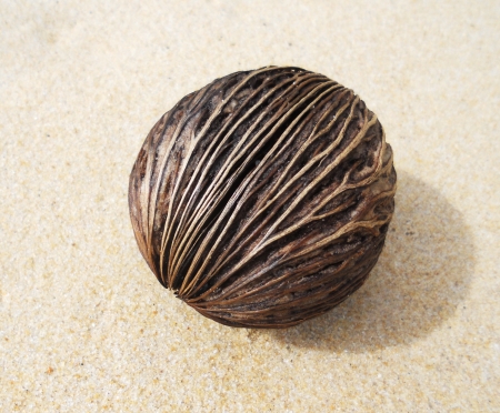 Alstonia scholaris plant, dried seed of the Alstonia scholaris plant, on a pale sandy beach, Phuket, Thailand Asia