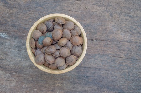 Top view of Kapulaga Jawa or Javanese cardamom (Amomum compactum), on a wooden table, a type of cardamom which is used as a spice for dishes, herb and medicine