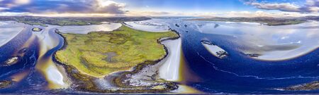 Aerial of Rossbeg between Ardara and Portnoo in County Donegal, Ireland.