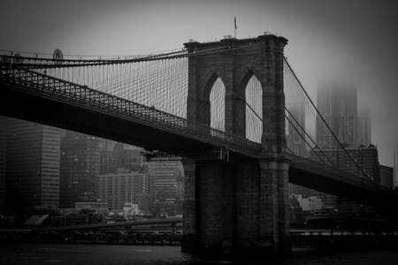 Brooklyn Bridge in New York City, USA. Black and white.