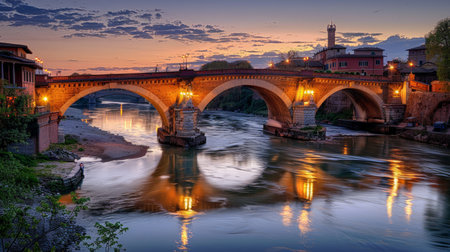 Historic Bridge over River at Sunset