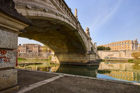 Vittorio Emmanuelle II Bridge beautiful bridge over the Tiber River in Rome in daylight