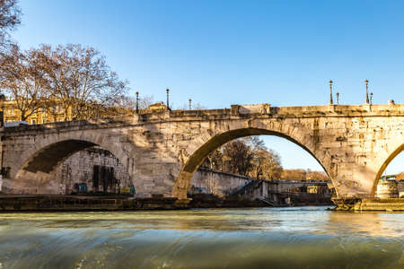 View of the Aelian Bridge in Rome on the Tiber river