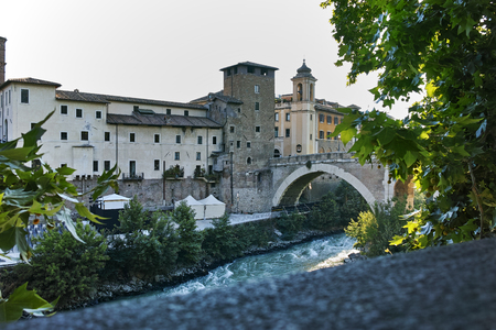 Caetani Castell and Fabricio Bridge in Rome, Italy