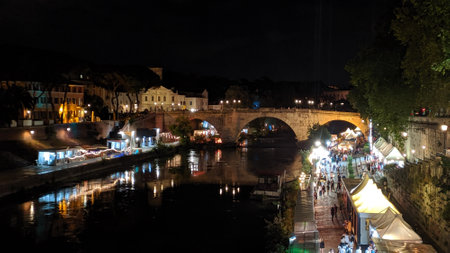 Beautiful River Tiber in Rome by night
