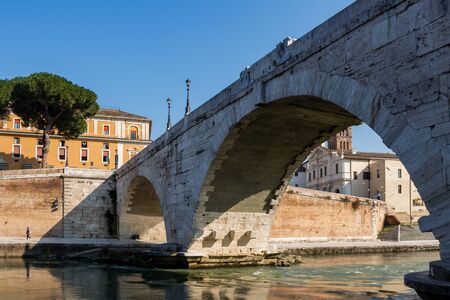 Ponte Cestio bridge over the Tiber (Tevere) river. It is a stone bridge with 3 arches spanning the river to Tiber Island (Isola Tiberina) and known for sunset views. Rome, Lazio, Italy.
