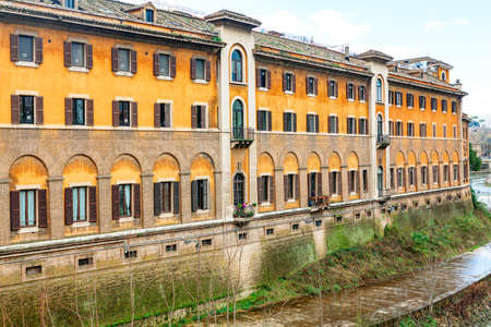 ROME, ITALY - CIRCA NOVEMBER, 2017: view of Tiber riverside and cityscape of Rome. Rome is the capital city of Italy.