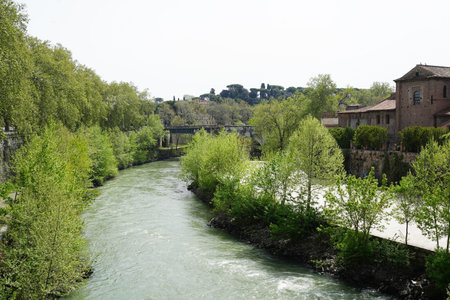 Picturesque landscape with an island on Tiber river, Rome, Italy