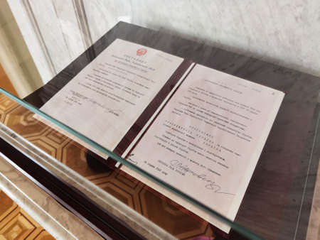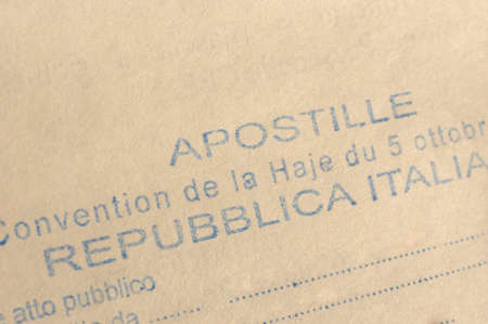 ROME, ITALY - CIRCA 2018: Italian apostille based on The Hague Convention Abolishing Requirement of Legalisation for Foreign Public Documents (aka the Apostille Convention or Apostille Treaty)