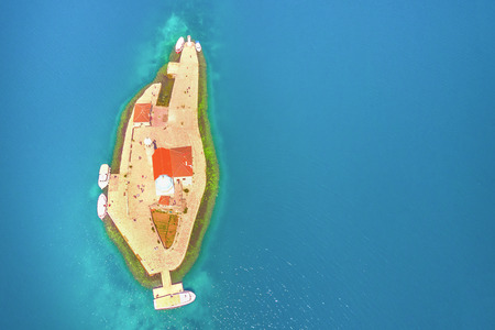 Aerial view of the beautiful ancient church on the reef