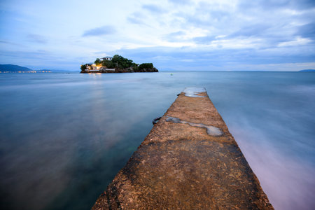 Pontikonisi Mouse Island during sunset. Corfu island, Greece.