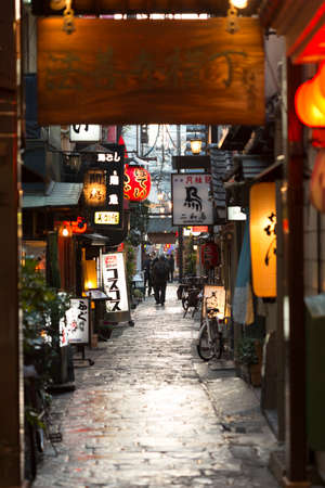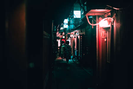 Tokyo, Japan - January 08, 2020: Shinjuku Golden Gai area with a lot of Small Bars in Night Tokyo City Center