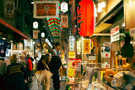 Kyoto, Japan - September 29, 2018 : Nishiki market, Japanese old traditional market street