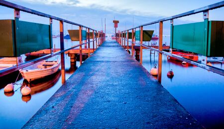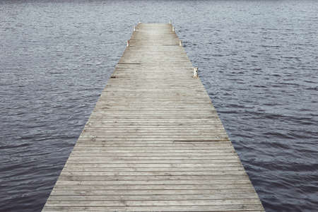 old wooden pier on the background of a dark lake water concept