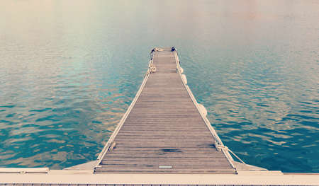 Wooden pier on the lake in the morning. Nature background.