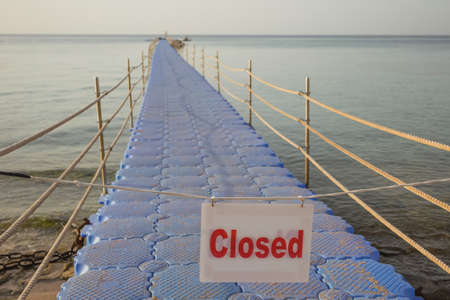 Closed passage to swimming area on summer tropical beach. Horizontal color photography.