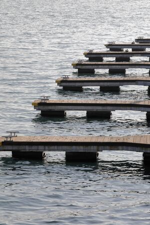 Top view of the empty numbers of floating piers for powerboat and sailboat